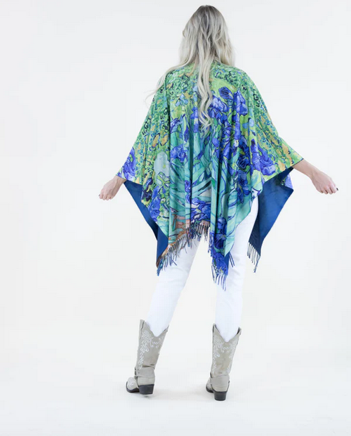 Camille Garden Muse Fringe Ruana – Blue Iris