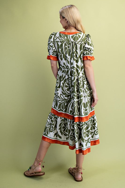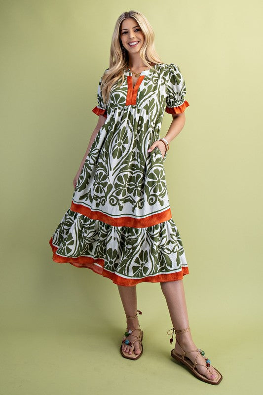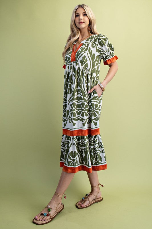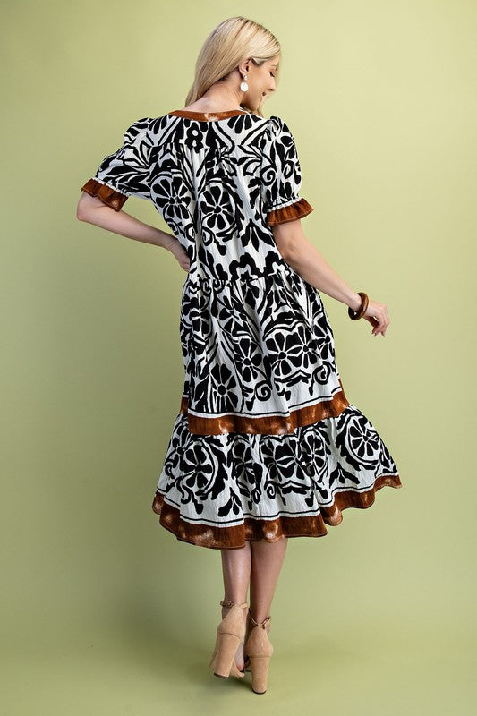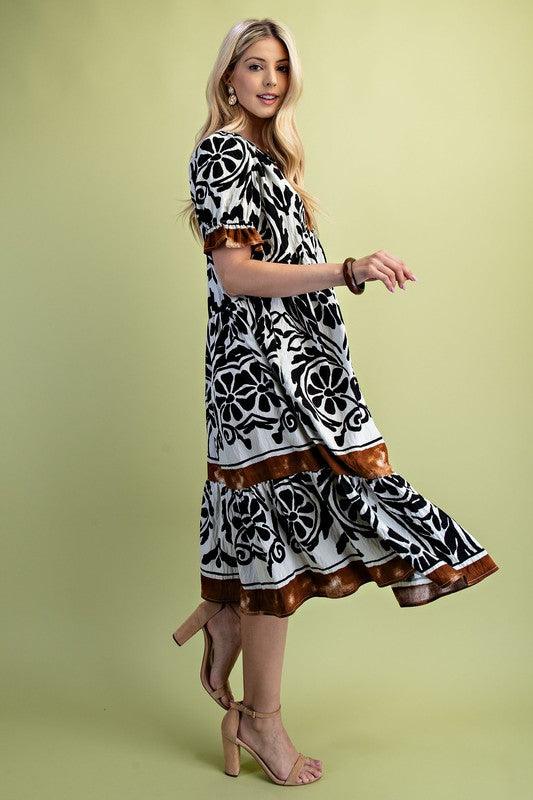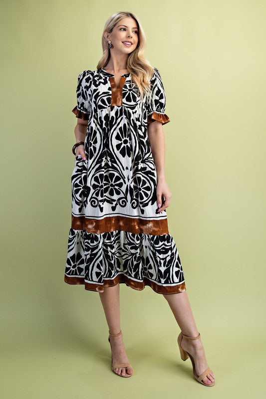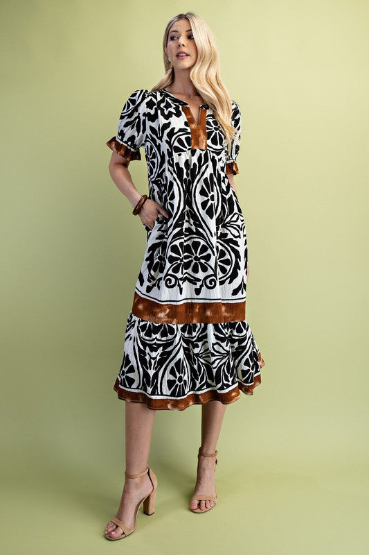 Border Medallion Print Tiered Pocket Mini Dress