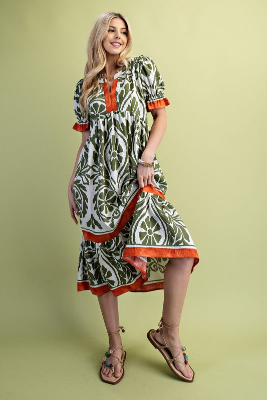 Smocked Waist Balloon Sleeve Midi Dress