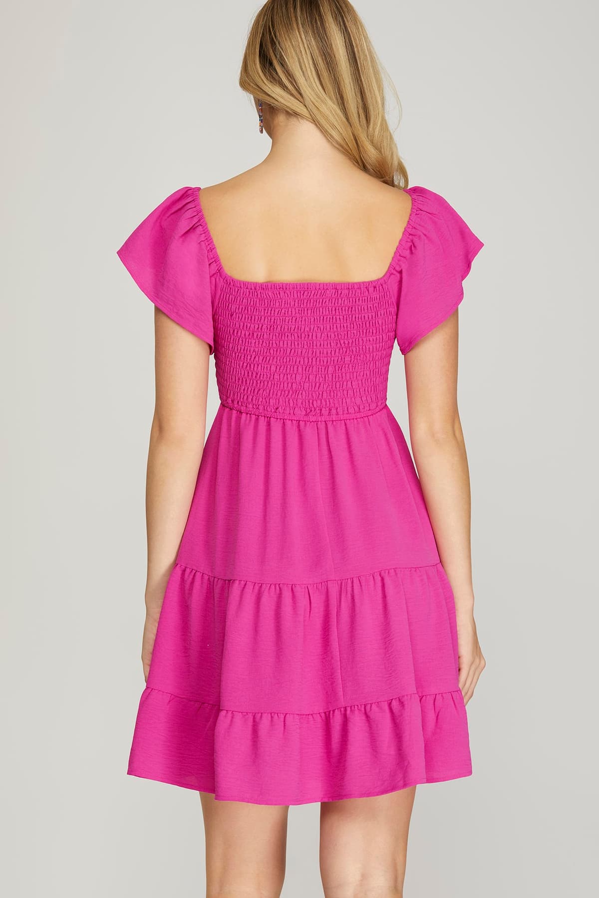 ~ Flutter Sleeve~ Sweetheart Neckline~ Smocked Bodice~ Pockets