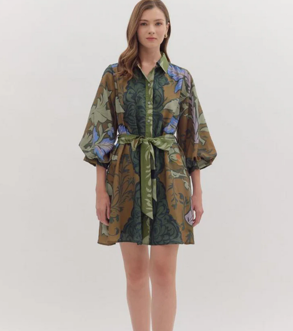 Juliet Enchanted Tapestry Shirt Dress- Olive