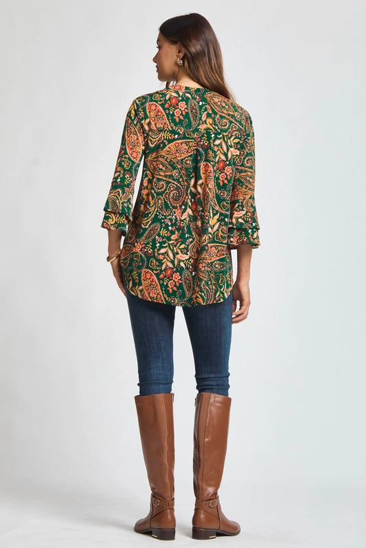 ~ 3/4 Double Ruffle Bell SleeveFabric: 94% Polyester 6% SpandexLabel: Dear Scarlett