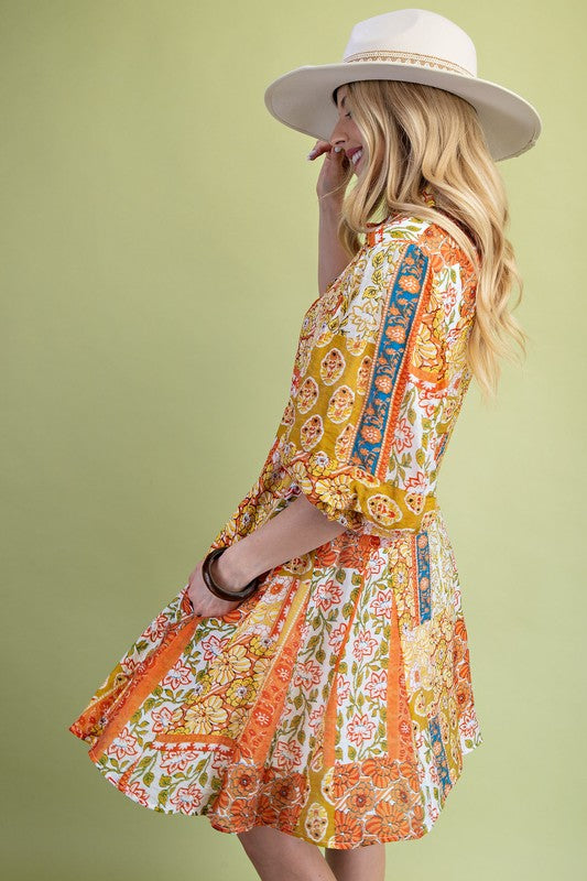 ~ Flared Skirt~ 3/4 Length Gathered Balloon Sleeves~ Pockets