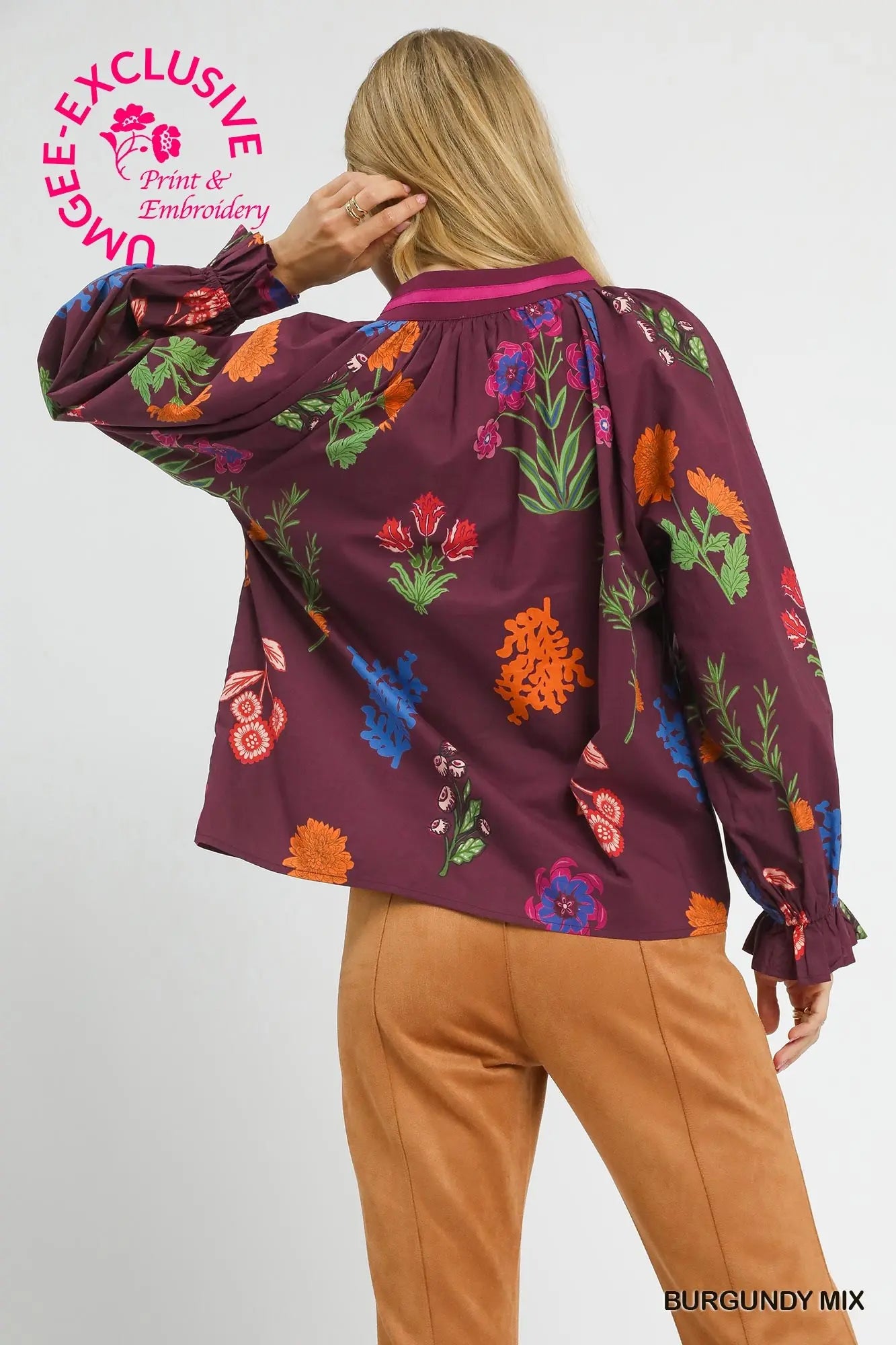 Burgundy Mix Floral Embroidered Blouse – Umgee Exclusive