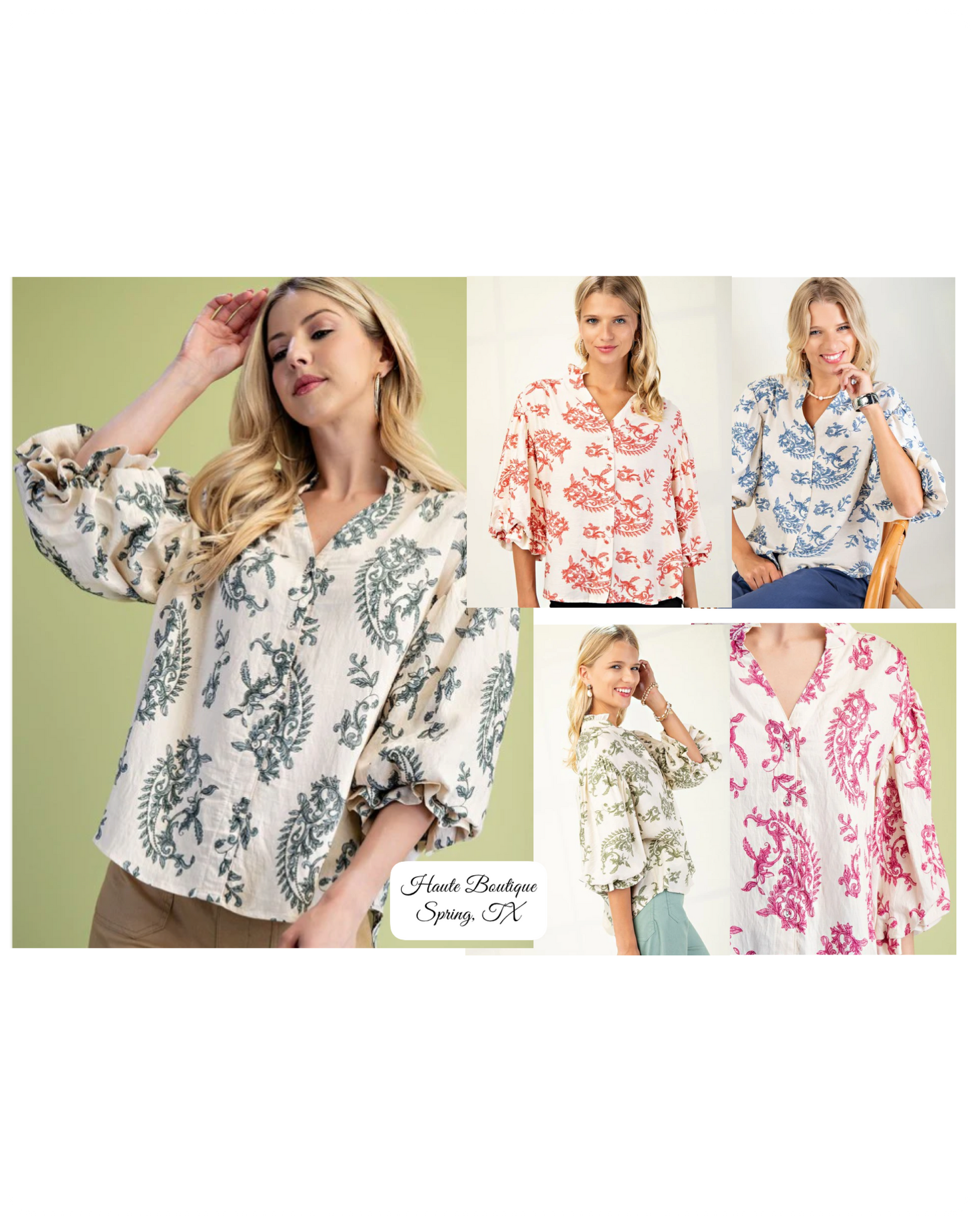 Elevate your everyday style with this effortlessly chic blouse. The lightweight fabric drapes beautifully, while the gentle ruffle at the neckline and the ¾ puff sleeves add a feminine touch. Button-front closure keeps it versatile — perfect for dressing up with slacks or pairing with your favorite denim for a polished casual look. A timeless blend of comfort and sophistication, this top is ideal for year-round wear.