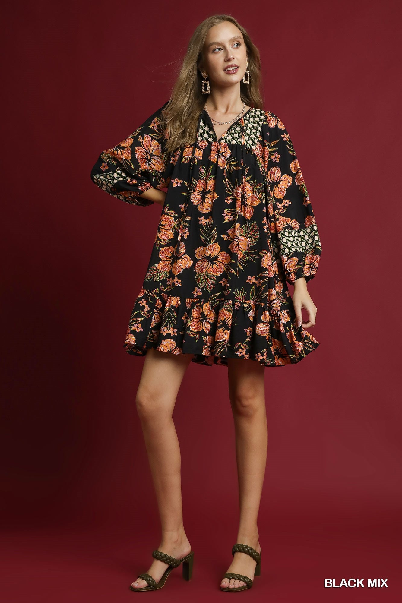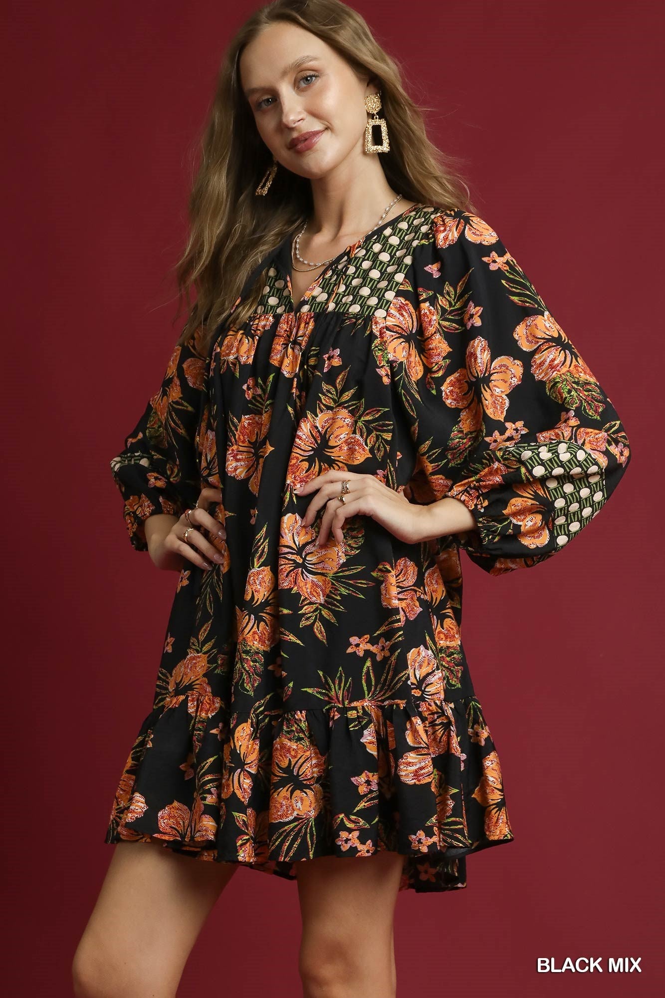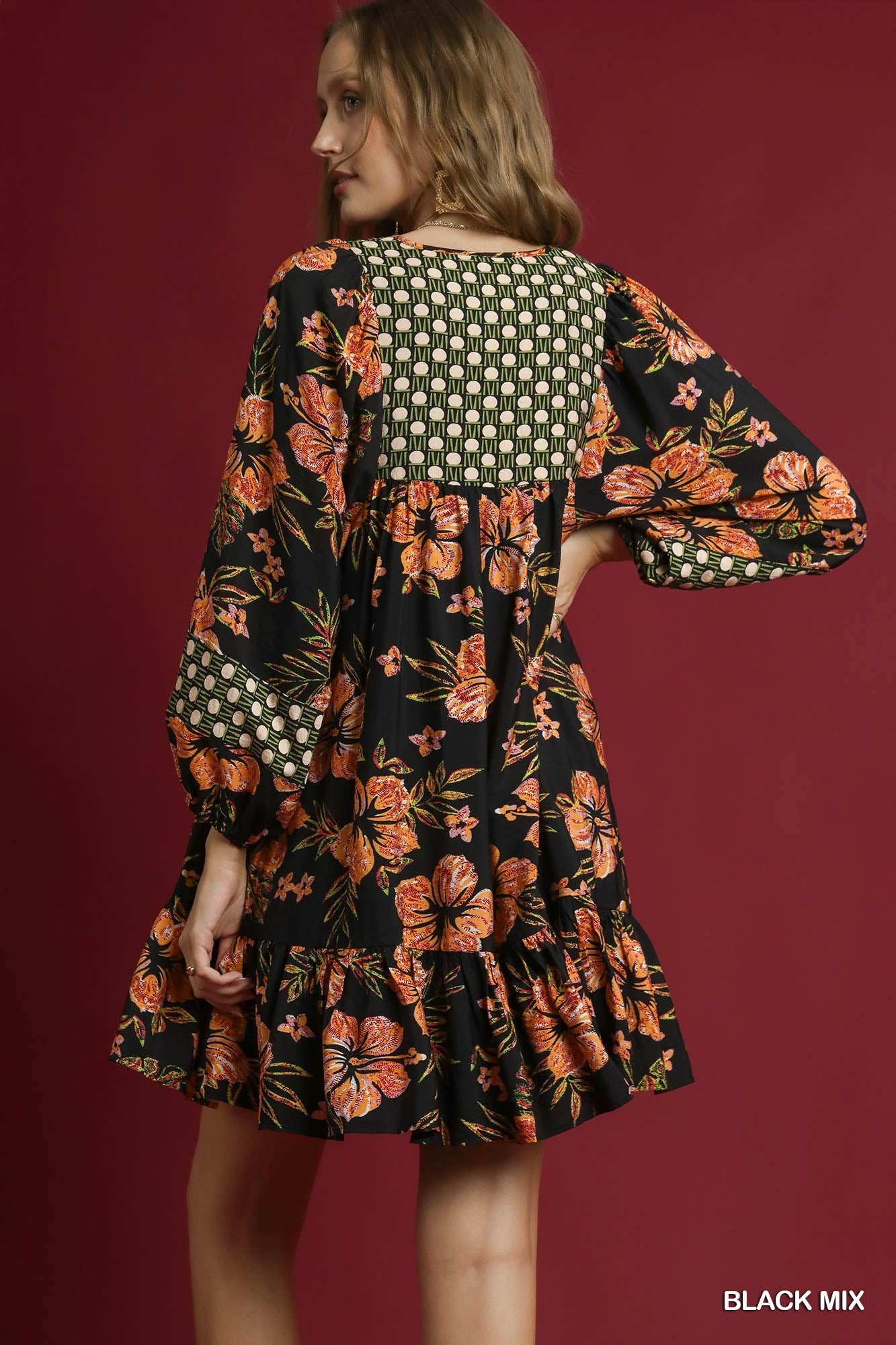 • Split V-neck with smocked yoke detail• Long puff sleeves with smocked cuffs• Tiered ruffle hemline• Relaxed, flowy silhouette• Lined