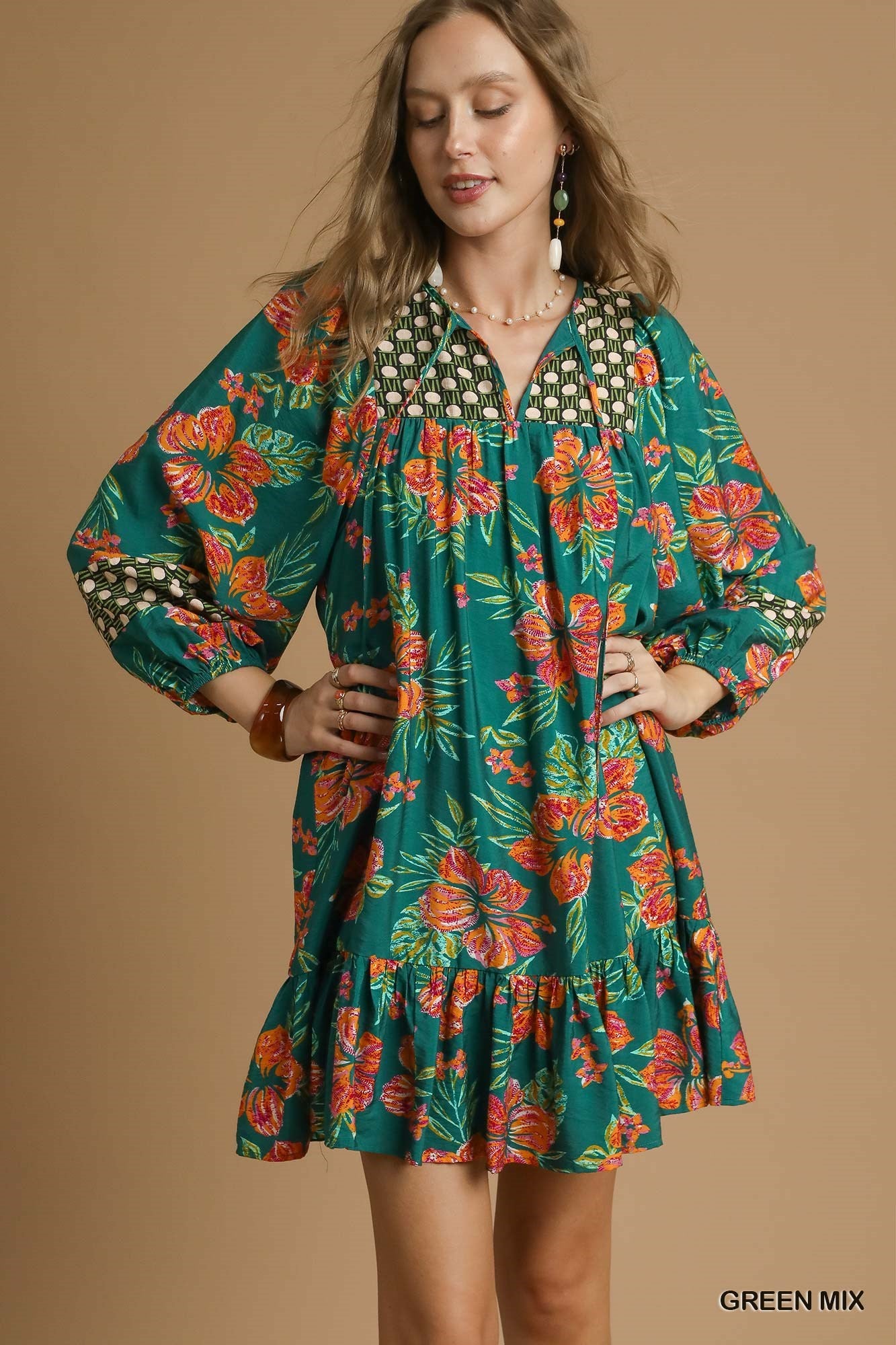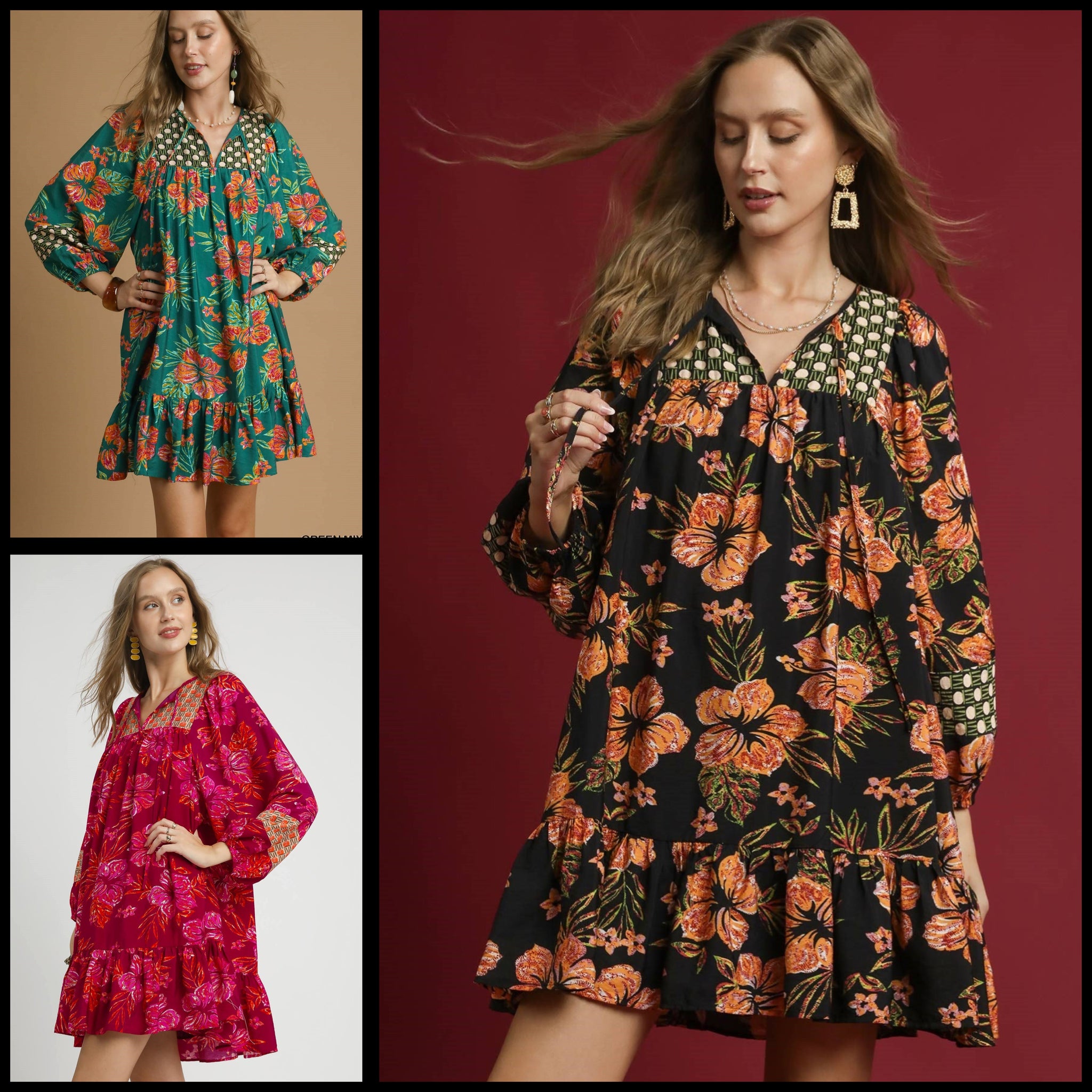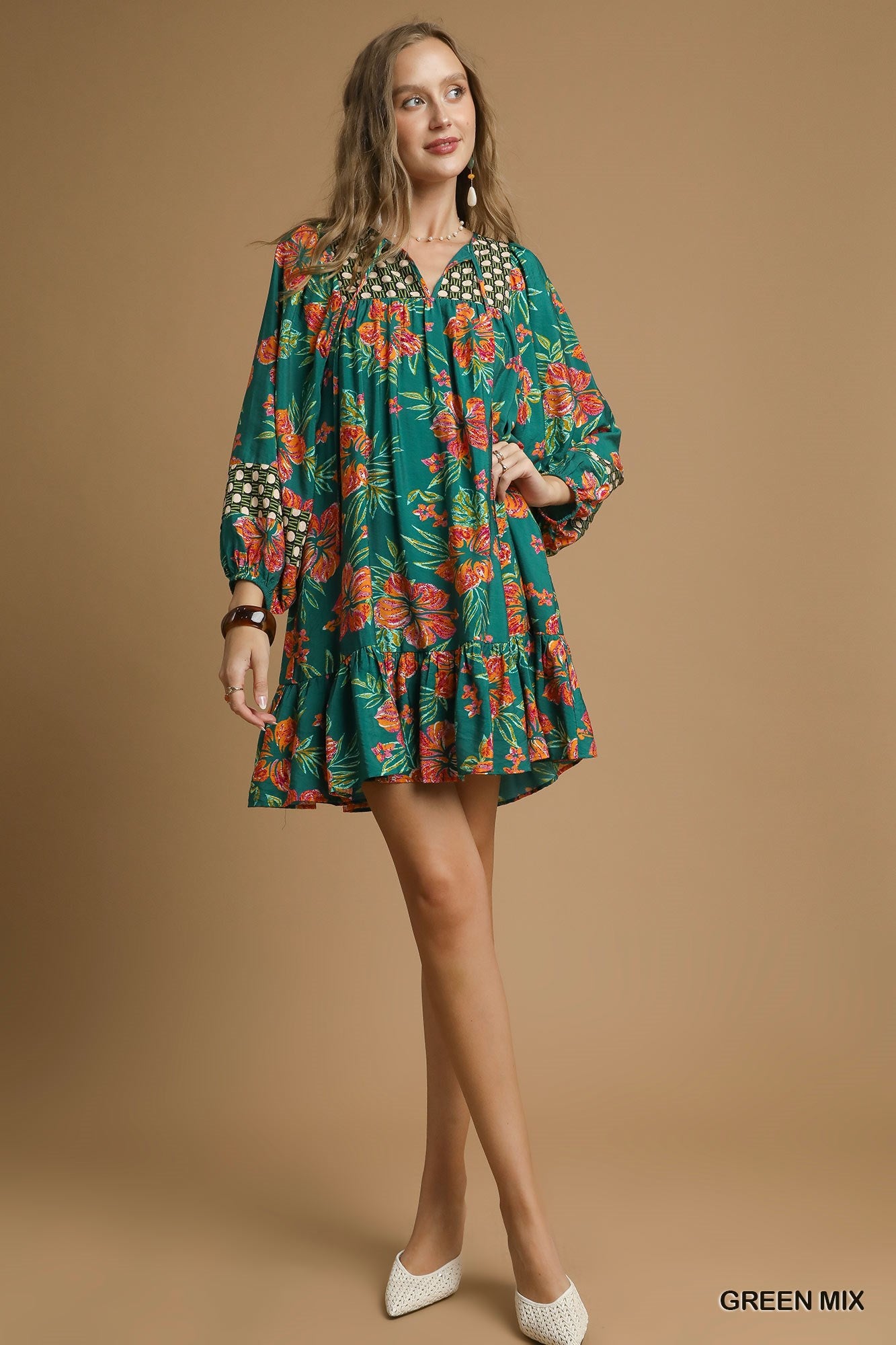 • Split V-neck with smocked yoke detail• Long puff sleeves with smocked cuffs• Tiered ruffle hemline• Relaxed, flowy silhouette• Lined